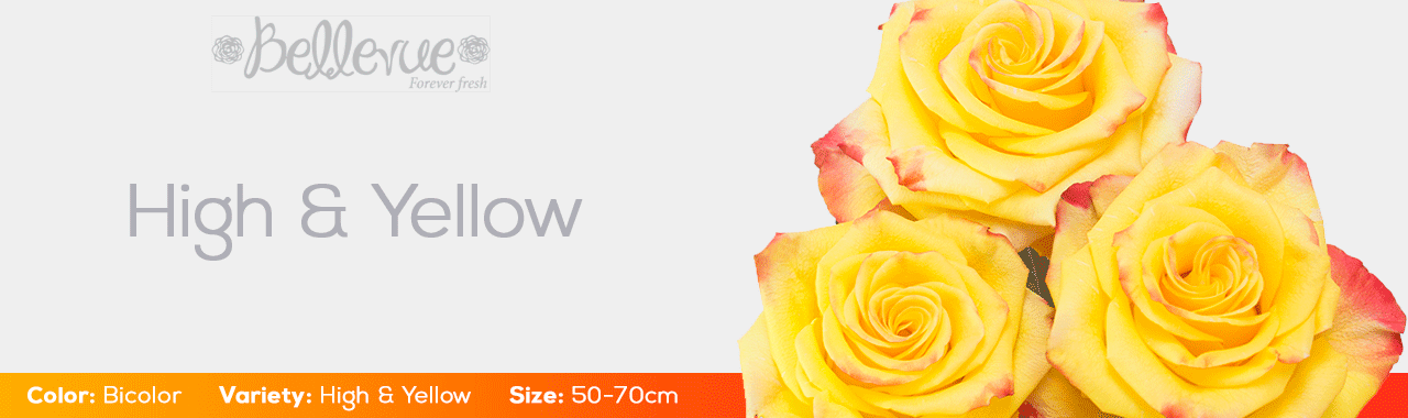 These High and Yellow roses will make your heart melt. The rich yellow and red hues blend together to create a truly exceptional rose that is as vigorous as it is beautiful. In addition to the beauty of these blooms, their exquisite fragrance makes these stems the perfect choice for both gift and garden.