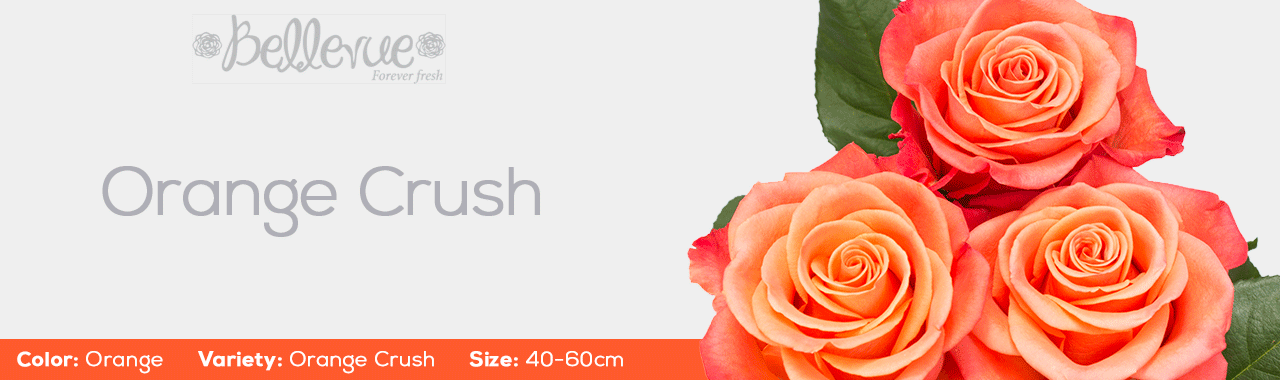 The Orange Crush Rose is a cheerful combination of orange and tangerine tones with coral-red tips on the exterior petals. When paired with other orange or bicolor blooms, it can create a bright and cheery arrangement, or if you want the color to stand for itself, Orange Crush is great with greenery or white flowers.