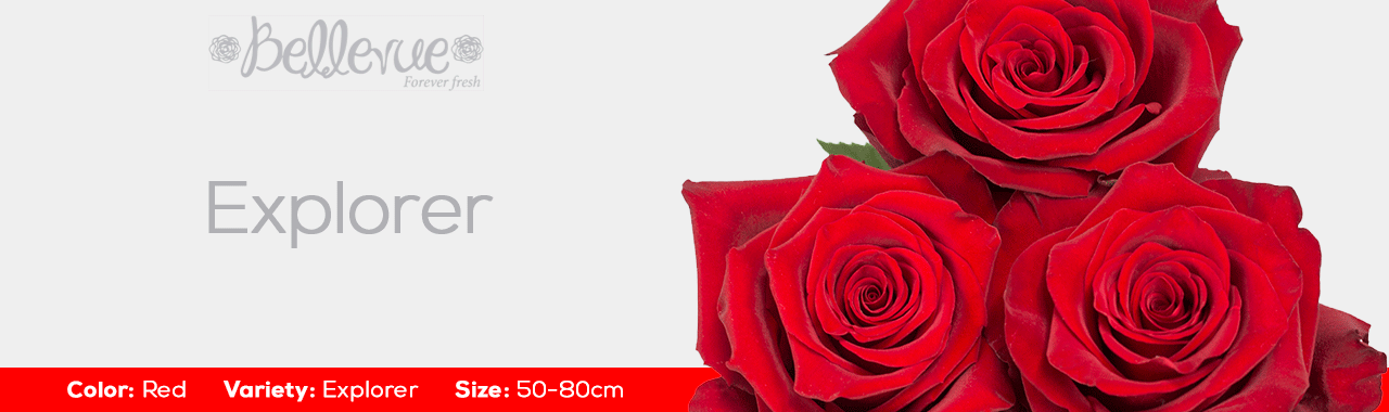 Explorer Roses, premium long stem variety, 50-70 cm. Farm-direct from Bellevue Roses, perfect for weddings and elegant arrangements.