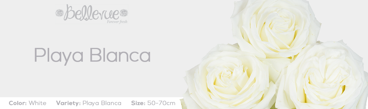 Elegant Playa Blanca Roses in 50–60 cm stems. Farm-direct premium white roses with long vase life—perfect for weddings and luxury floral designs.